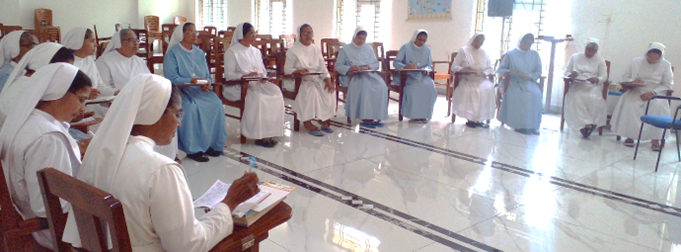 On September 13th one day program was conducted for the sisters who are working in health sector at Archana Provincial house. Around twenty sisters were present. The program was organized by Sr. Mercy Kuriyickal. The main aim of the day is to refresh the sisters with motivational talks, sharing and discussing our experience in hospital services and to enhance our community spirit.