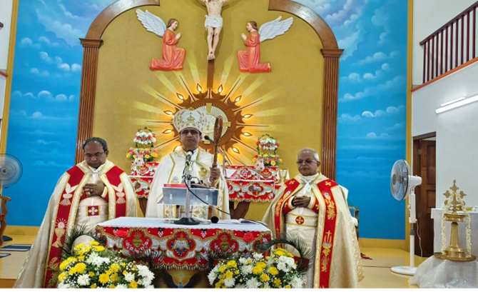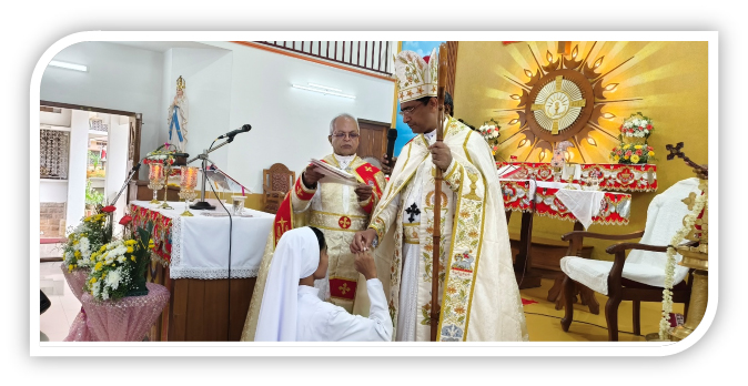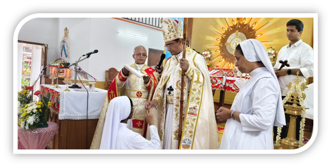The solemn Holy Eucharist was presided over by His Excellency Mar Sebastian Vaniyapurackal, the newly appointed Metropolitan Archbishop of Kalyan. The celebration was further graced by the presence of many priests and religious, including concelebrants Rev. Fr. Joy Kaipananickal, Rector of Don Bosco, and Rev. Fr. Paulson, the Vicar of Sacred Heart Church Keezhmad. Friends, relatives, parishioners, and members of the Dorothean family also joined in, united in prayer and joy as they witnessed our total consecration to God.