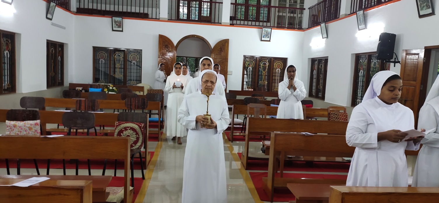 Today, 20th October, is the day on which our beloved sister St. Bertilla left this earthly life and reached in the presence of her loving Heavenly Father. Therefore, with gratitude and joy, we began the centenary celebrations of the heavenly birth of St. Bertilla, by lighting the jubilee candle by His Excellency Mar Mathew Vaniyakizhakkel VC, bishop emeritus of the diocese of Satna, North India.