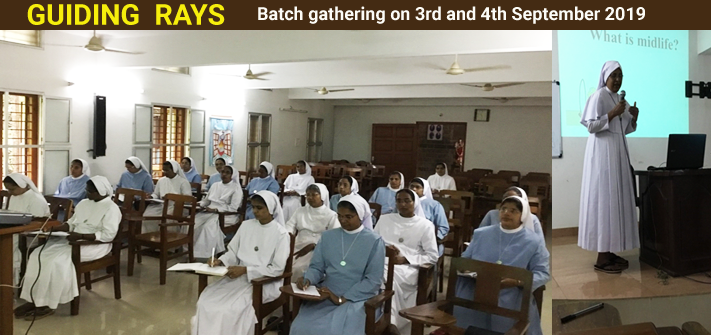 The rays of the rising sun from the east orbit broke into our hearts and invited each one of us for a discernment and decision. The very first day of the gathering has been begun with an inaugural address of our vice Provincial, Rev. Sr. Suni, at 8.30 and introduced the day. There was a brief sharing session for refreshment. We started the seminar on midlife spirituality by Rev. Sr. Christal SD at 9 am. She underlined the following points.
