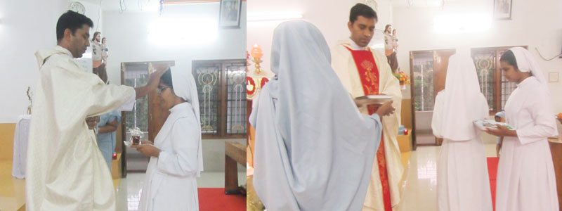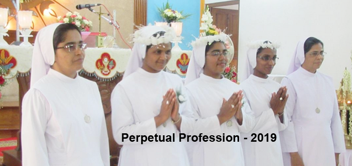 “Rejoice Rejoice always! Again I say Rejoice! For this is the will of God for you in Christ Jesus”. Yes the fulfillments of these words have come true on 11.05.2019 at 2.30 pm in Indian Province. It was the day of rejoicing and Thanksgiving day for all of us in the Congregation because God has blessed the Congregation and the Holy Mother Church with three precious perpetually professed sisters to do His service. Indian Province was fully immersed in the celebration of the solemn Holy Mass which was solicited by Very Rev. Dr. Joseph Maleparampil, Superior General of the Missionary Congregation of the Blessed Sacraments (MCBS). The religious from different Congregations are participated the celebrations. Parents, relatives, dear and near ones arrived and took part the function. After the Holy Mass there was small refreshment followed by the celebration of the event with cake cutting warm wishing. On every face there was bubbles of joy and gladness radiating to everyone with smile and laughter.
