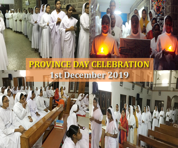 Eight years after the formation of the Province of the Sisters of St. Dorothy, Daughters of the Sacred Hearts, in India, the Province Day was celebrated for the first time on 1st December 2019. The festivity began on 30th November with a meaningful Prayer service at 6.45 P.M., preceded by a floral procession from the holy Founder’s image at the main entrance, going up to the community chapel. An Indian oil lamp was lit by the Provincial Superior and other sisters representing Province, symbolizing the perennial presence of Christ who lighted the path for the developmental growth of the Province. The Prayer Service gratefully recalled the growth process of the province from its embryonic stage to its present status, appreciating the selfless sacrifices made by the pioneers whose dedicated service made the congregation to flourish in India. Unity of the members and their collaborative efforts were highlighted by various ritual representations. Renewing gratitude to God Almighty for all the past graces, and invoking abundant blessings for the future through the intercession of St. John Antony Farina, our father founder and St. Maria Bertilla, our co-sister, the stirring Prayer Service concluded on a joyful note.