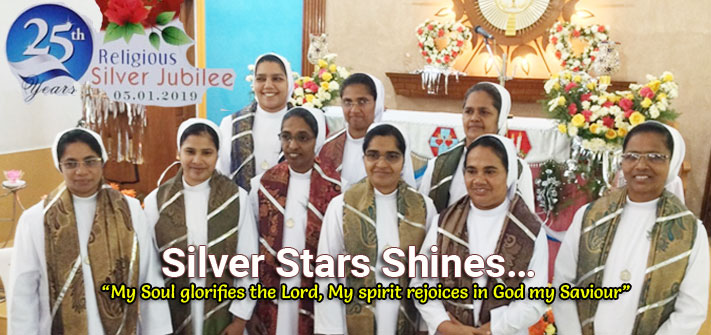 Countless are His blessings and unconditional is His faithfulness and love towards me. As I celebrate the Silver Jubilee of my vestition and first profession, I pray for each one of you – for, you have blessed me with your graceful presence during the Jubilee Mass and for the celebrations thereafter. I thank my parents who generously offered me to the service of the Lord, and I convey my sincere thanks to all the people, dear and near ones, well-wishers and friends.