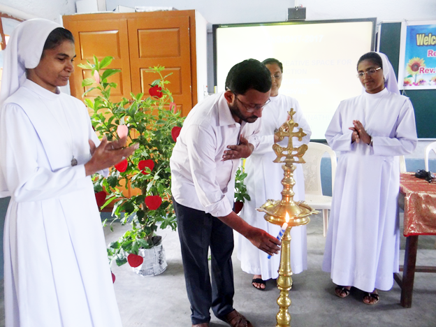The inaugural ceremony was done at Angels’ school, by Rev. Fr. Deay belongs to the Congregation of Missionaries of St.Thomas.He was working with the upliftment of youthin mission areas, at present he is an active member of KCBC wasthe chief guest of the day. Sr. Alice Azhakrdath welcomed the gathering by pointing the importance of education and purpose of coming together. Fr. Deay continued his first session with the title of setting a creative space with different activities. It really benefited each of the teachers. Today the students want creative teachers and the one who can make their learning more joyful. He presented it with little theoretical and more practical. It is quite sure that it will substitute and assist all the teachers to create a celebrative class room.