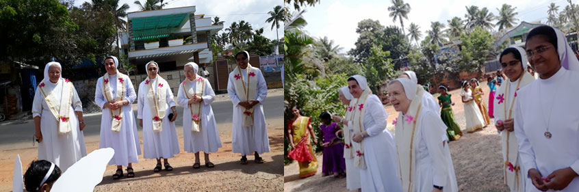 On 23rd they returned to Archana. On 24th they went to the community in Ezhupunna. The community welcomed them with a typical Indian dance .They had interaction with the various activities of the sisters such as the formation of aspirants, conducting of nursery school and services rendered in the diocesan school.