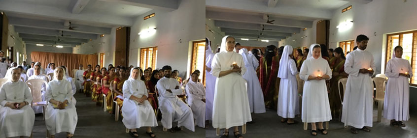 On 14th September, 2018 Rev. Mother General Sr. Maria Teresa Pena and her Councilors Sr. Luisella Gosmin, Sr. Luciana Tognon, Sr. Roberta Dalla Stella and Sr. Julia Lopez arrived at Kochi International Airport to begin their canonical visit. At the Airport Indian Provincial Rev. Sr. Biji Mulackal and the representatives of the Province gave them a welcome and accompanied them to Archana. At the provincial House they were welcomed with a beautiful dance by the postulants. With the accompaniment of dance all proceeded to the chapel in procession. Sr. Provincial welcomed the Mother General and Councilors with warm words. It was followed by the community singing of Magnificat. After lunch the visitors proceeded for a much deserved siesta. The Eucharistic celebration in the evening was presided over by Rev. Fr. Francis, the Rector of Don Bosco College, Keezhmadu.