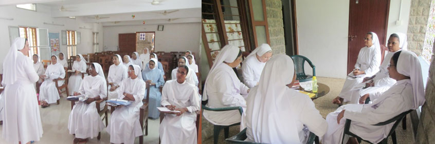 On 25thSeptember there was gathering at Angamaly for sisters the sisters who are working in the health sector. 28 sisters were present for the meeting. The gathering commenced with a prayer in the Chapel, from where proceeded to the venue of the meeting. Sr. Luciana shared her valuable experience in Brazil Mission. Sr. Julia also addressed the gathering. Dr. Elizabeth a famous gynecologist, was the main resource person for the meeting. The day concluded with the greetings by Mother General and her councilors.