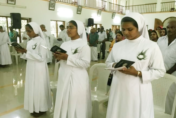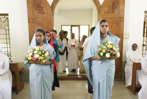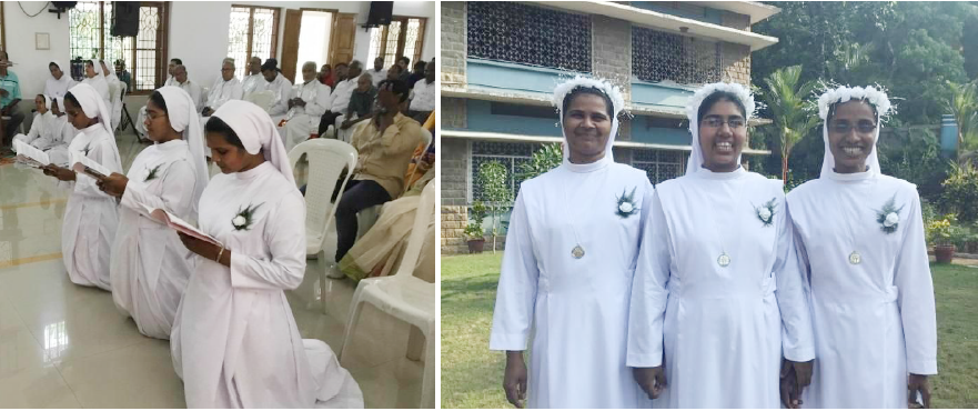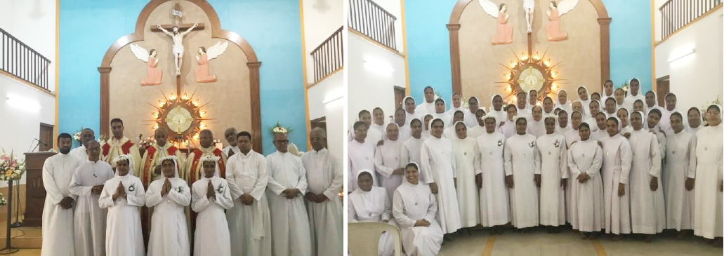 “Rejoice Rejoice always! Again I say Rejoice! For this is the will of God for you in Christ Jesus”. Yes the fulfillments of these words have come true on 11.05.2019 at 2.30 pm in Indian Province. It was the day of rejoicing and Thanksgiving day for all of us in the Congregation because God has blessed the Congregation and the Holy Mother Church with three precious perpetually professed sisters to do His service. Indian Province was fully immersed in the celebration of the solemn Holy Mass which was solicited by Very Rev. Dr. Joseph Maleparampil, Superior General of the Missionary Congregation of the Blessed Sacraments (MCBS). The religious from different Congregations are participated the celebrations. Parents, relatives, dear and near ones arrived and took part the function. After the Holy Mass there was small refreshment followed by the celebration of the event with cake cutting warm wishing. On every face there was bubbles of joy and gladness radiating to everyone with smile and laughter.