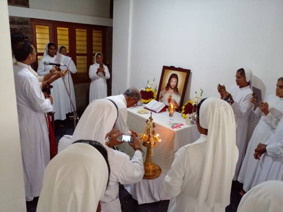 The 100th Death anniversary of Saint Maria Bertilla came to an end with an offering of holy mass and inauguration of a new house. The curia Bishop Mar Sebastian Vaniyapurakal was the chief celebrant of the holy mass. His Holiness while recalling the sanctity of St Maria Bertilla’s life he summarized in one word is that who found the treasures of holiness in the ordinary things. She could practice sacrifice and patience from her father who was a drunkard. The first and the final word of St Maria Bertilla was that “Do everything for Jesus other than that everything is nothing nothing.” His Holiness requested the faithful to follow her way of cart (Less travelled road). After the homily sister Anjitha Renewed her vows for one more year.