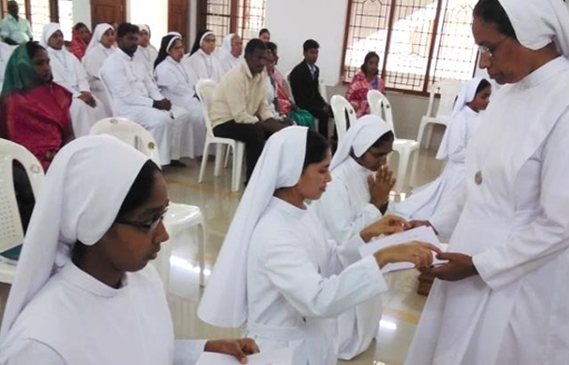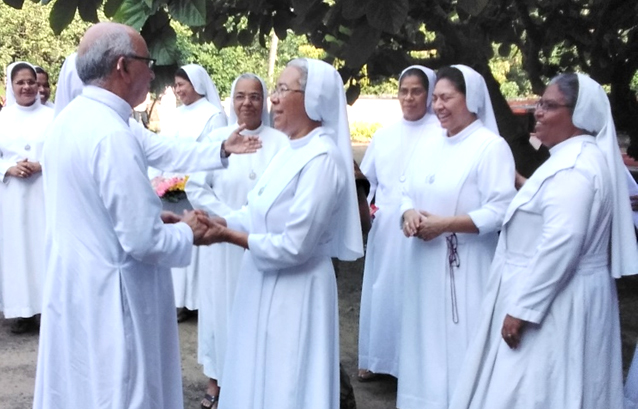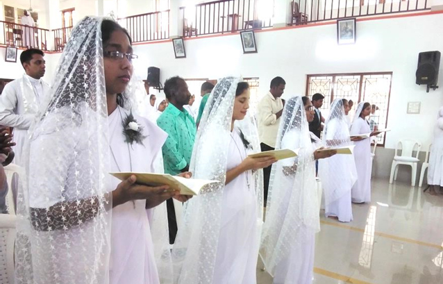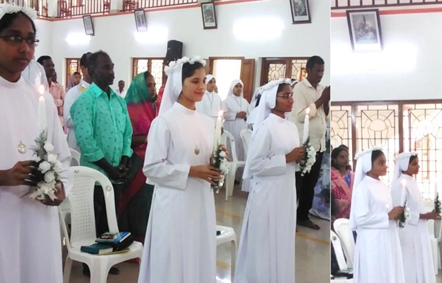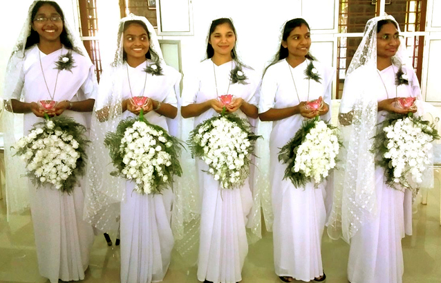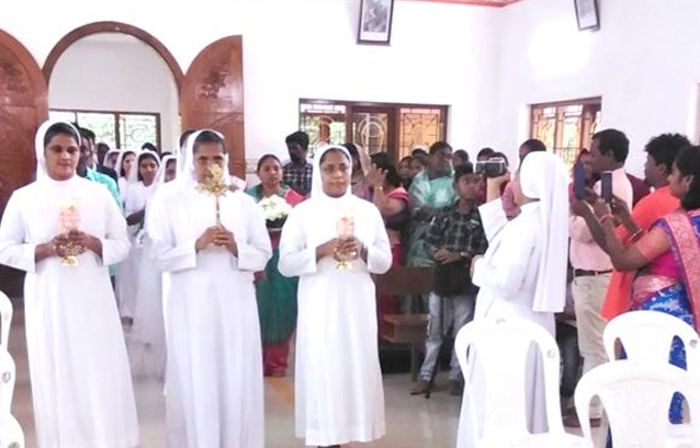 It was a day of intense prayer, celebration, smiles, and overwhelming emotions. Our novices, Anie, Aparajita, Deepika, Sowjanya, and Subhashini, were accompanied and supported by their family members, who came from afar for this special moment, as well as by religious friends, seminarians, priests, and the representatives of Dorothean sisters from the different communities present in India. The presence of our general councillors, Rev. Sr. Janet and Rev. Sr. Catalina, enriched the atmosphere of communion and gratitude.