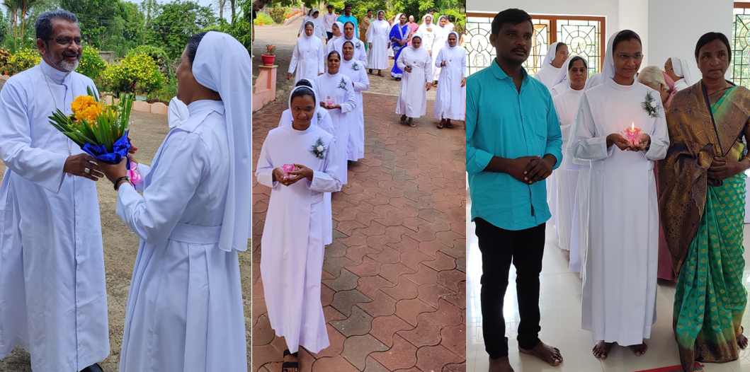 Following the Eucharistic celebration, a felicitation ceremony ensued, honouring Sr. Jyothi, the final professed sister, and the jubilarians for their profound impact on the congregation and the Church. Felicitation speeches by esteemed guests highlighted the spiritual journey and committed service of these dedicated nuns. The celebration concluded with a vote of thanks, underscoring the significance of their commitment, followed by the cutting of cake and agape. Conclusively, the celebration of the final commitment and the Silver Jubilee serve as a poignant reminder of the unwavering dedication and selfless service epitomized by Sr. Jyothi Mannava and the jubilarians. Their journey, marked by faith, sacrifice, and love, has left an indelible mark on the congregation and the church. As they embark on the next chapter of their spiritual voyage, may they continue to be guided by the light of Christ, illuminating the world with their compassion, kindness, and untiring commitment to God and humanity. Let us extend our heartfelt gratitude and seek God's blessings for their spiritual journey ahead.
