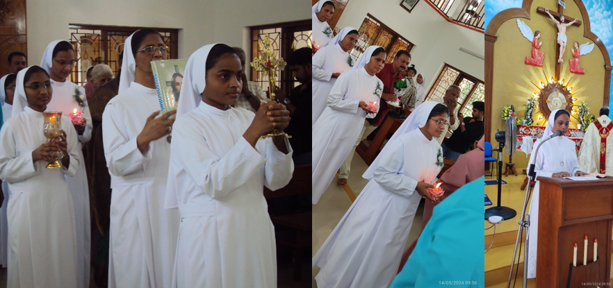 On May 14, 2024, at 10:00 a.m., the peak of the celebration commenced with a Solemn Holy Eucharistic celebration led by Rt Rev. Dr. Jose Pandarasseril, the Auxiliary Bishop of Kottayam, at the provincial house in Aluva. Rev Fr. Joy Kaipananickal SDB and Rev Fr. Varghese Kootunkal SDB, Sacred Heart Parish priest concelebrated the Holy Mass. The liturgy was enriched by readings resonating with themes of gratitude and service. During the homily, His Excellency Bishop Jose compared the lives of the nuns to diamonds, even though they are hard to mine, but after processing, they become precious. They have to be like Jesus' pure diamonds through years of training, getting the hard edges smoother, and getting a fine diamond, which is very precious and of high cost. He also indicated that the prophet Jeremiah's acknowledgment of his youth underscores the divine ability to work through the humblest of vessels. In embracing his calling, he exemplifies the profound truth that God's purpose transcends human limitations, inviting all of us to trust in the transformative power of divine grace.